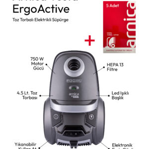 Arnica Vesta Plus ET14130 Yıkanabilir/Kullan At 4,5Lt. Toz Torbalı Süpürge 750W.Turbo Fırçalı-Hepa13