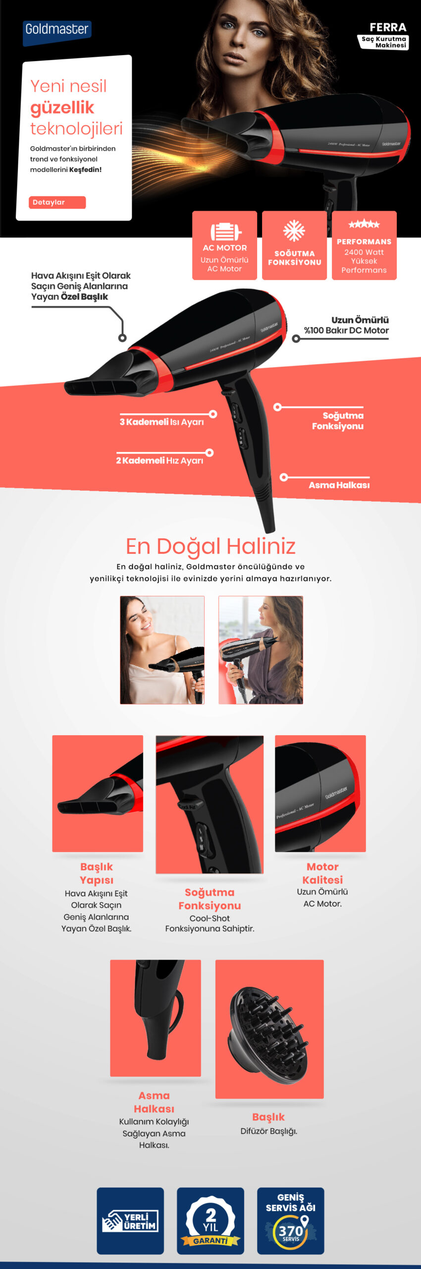 Kategoriler: Saç Kurutma Makineleri, Saç Kurutma Makineleri Marka: GOLDMASTER