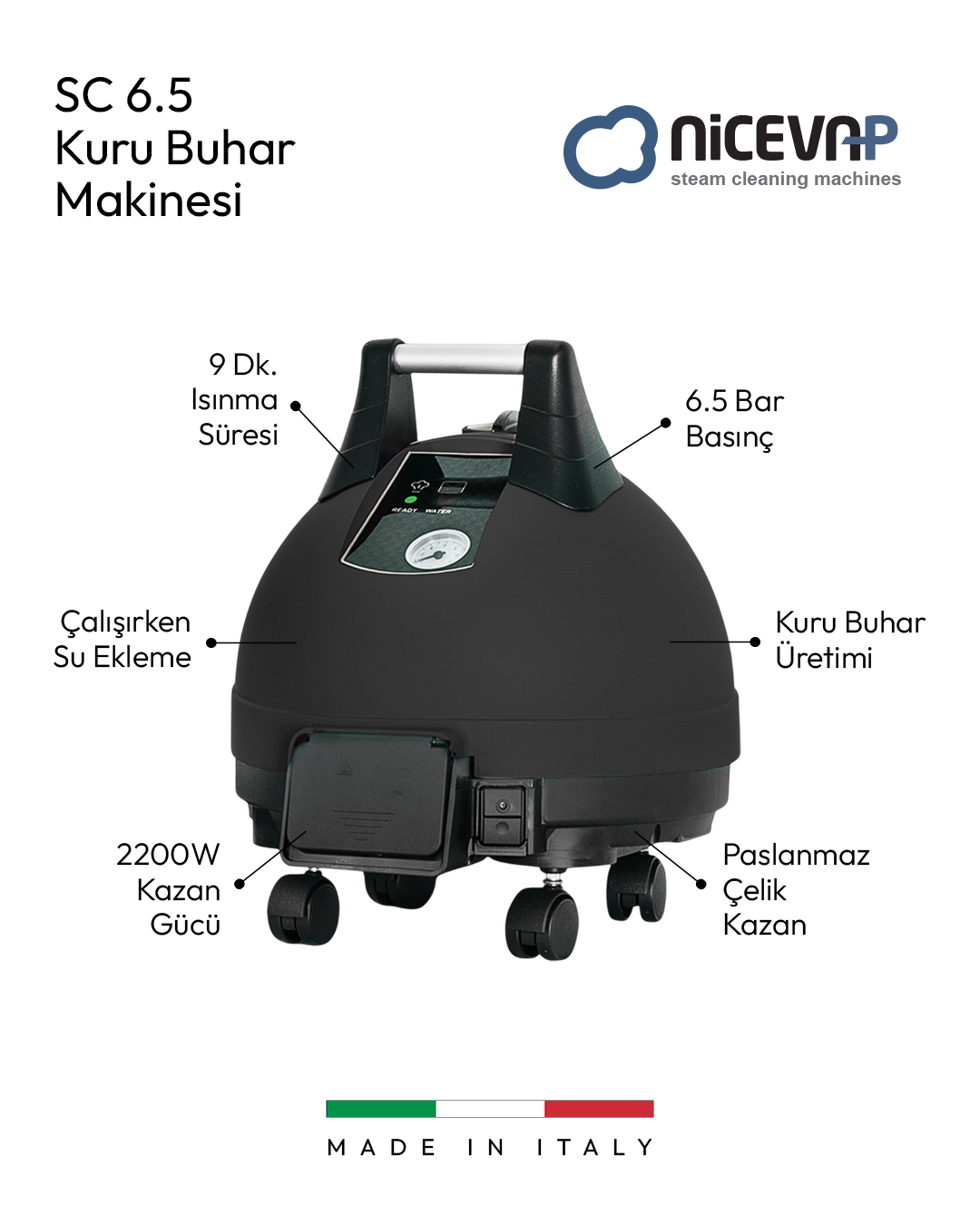 Nice vap Sc6,5 Kuru Buhar Üretebilen 6,5 Bar Buharlı Temizleyici-Çalışırken Su Eklenebilir