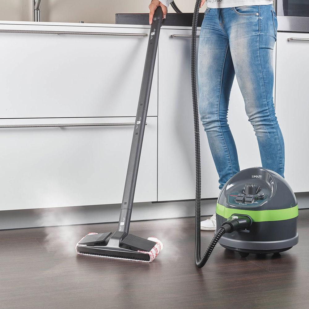 Basınçlı buharın gücü sayesinde zemininiz sadece temiz olmanın ötesinde: hijyenik temizlik. Zemini temizlemek için kullanılan fırça tek başına, kiri ovalayan kıllarla veya buharla çözülen kiri toplayarak yüzeylerde iz bırakmayan özel mikrofiber bezle kullanılabilir.