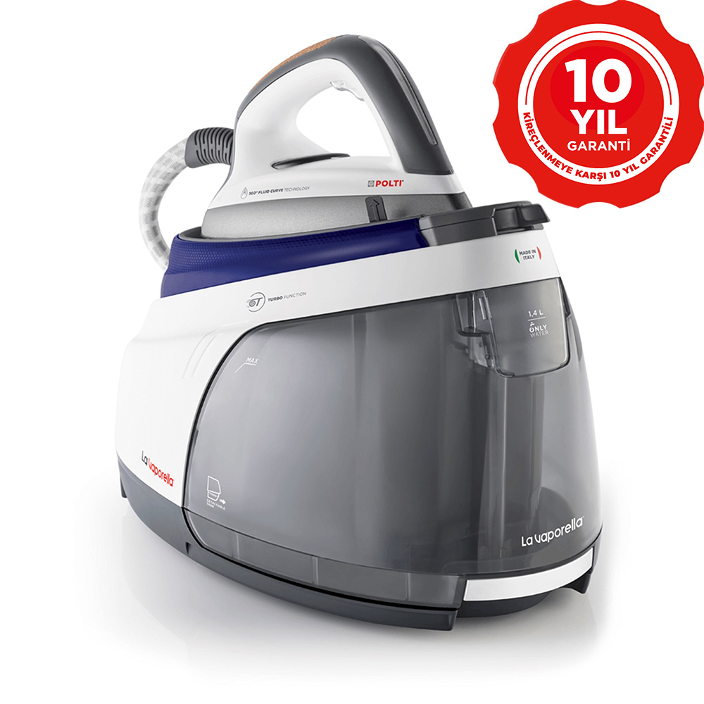 Zamanla maksimum güvenilirliği garanti etmek için, La Vaporella, kireç oluşumunun olumsuz etkilerini önleyen ve herhangi bir bakım gerektirmeden kazanınızın ömrünü uzatan özel UZUN ÖMÜRLÜ KAZAN TEKNOLOJİSİ ile 10 yıl garantili güçlü bir kazana sahiptir. Ayrıca, patentli 360° FLUID CURVE TEKNOLOJİSİNE sahip, yuvarlatılmış ve çok yönlü yenilikçi taban, en zorlu kırışıklıkları bile çaba harcamadan ortadan kaldırır.
