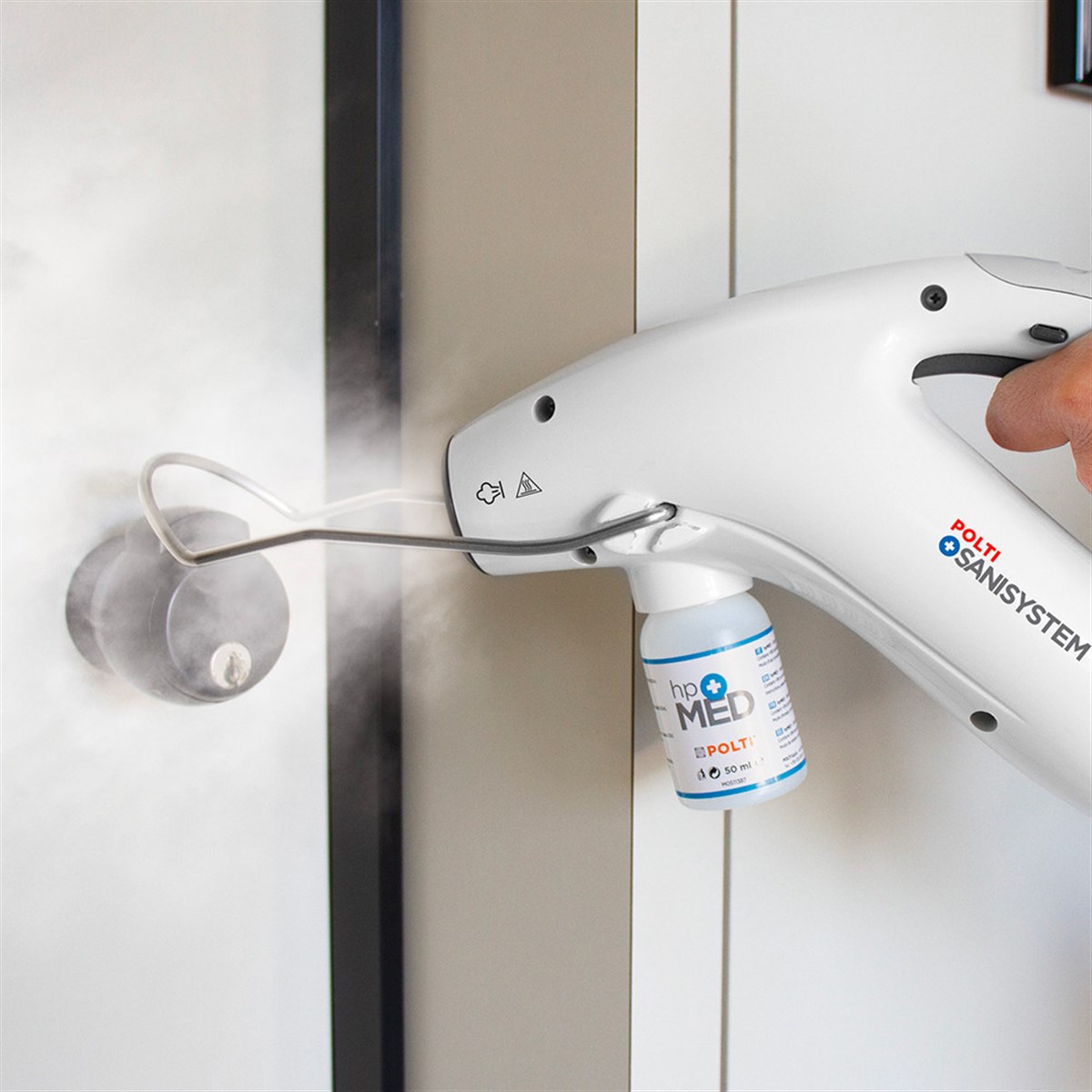 POLTI SANI SYSTEM BUSINESS, hızlı buhar dezenfeksiyonu için, sık kullanım için, tüm yüzeyler ve kumaşlar için ideal, sadece musluk suyu ve HPMed kullanan bir cihazdır. Tamamen İtalya’da tasarlanmış, ofisler, klinikler, kabinler, stüdyolar, güzellik salonları, arabalar gibi küçük ortamlar için idealdir … Kompakt boyutları, sınırlı alanlarda bile kolayca kullanılmasına izin verir. Patentli Isıtma Odalı teknolojisi, Polti Sani System Business dezenfeksiyon cihazı içinde, mikropları, bakterileri, mantarları ve sporları %99,999’a* kadar yok edebilen 180°C ‘ye kadar çıkış sıcaklığına ulaşan aşırı ısıtılmış kuru doymuş buhar üretir. Buhar neredeyse sıvı partiküller içermez ve dezenfekte edilecek yüzeyleri saran ve çabuk kuruyan bir bulut şeklinde çıkar. Dezenfeksiyon temassız gerçekleşir ve ulaşılması en zor köşelerde bile etkili olabilir. Dağıtım aşaması sırasında buhar, dezenfektan etkisini tamamlayan HPMed deterjan ile karıştırılır. HPMed, buharın sterilize edici etkisi için bir yardımcı madde görevi görür, insanların ve hayvanların varlığında kullanılabilir ve kötü kokulara karşı etkilidir.