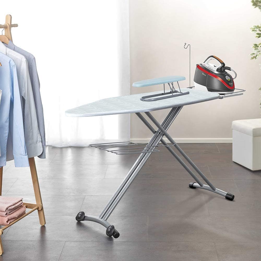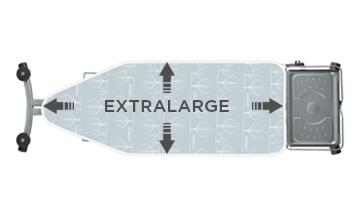 124 x 48,5 cm’lik ekstra geniş çalışma yüzeyi, geleneksel bir ütü masasından daha hızlı ütülemenizi sağlar.