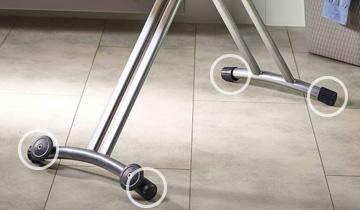Güçlendirilmiş çerçevesi ve 4 ayağı sayesinde Vaporella Top, ütü yaparken tam bir denge ve güvenlik sunar. Çalışma yüzeyinin altındaki iki pratik tutamak, ütü masasını birkaç saniye içinde açıp kapatmanıza olanak tanır.