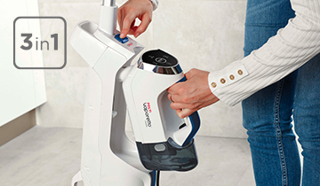Polti Vaporetto 3 Clean günlük temizlik işleminde devrim yaratıyor: şimdi tüm zeminleri tek geçişte süpürmek ve buharla temizlemek için sadece tek bir ürün yeterli olacak. Taşınabilir buharlı temizleyici ile evdeki tüm temizlenebilir yüzeyleri de tamamen sterilize edebilirsiniz: banyo armatürleri, ocaklar, aynalar, pencereler ve daha fazlası.