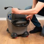 Büyük kir toplama tankı hızlı bir şekilde çıkarılabilir ve hızlı ve kolay bir şekilde temizlenebilir. Ayrıca cihazı saklamadan önce güç kablosunu makinenin arkasındaki özel kancalara sarmak mümkündür.