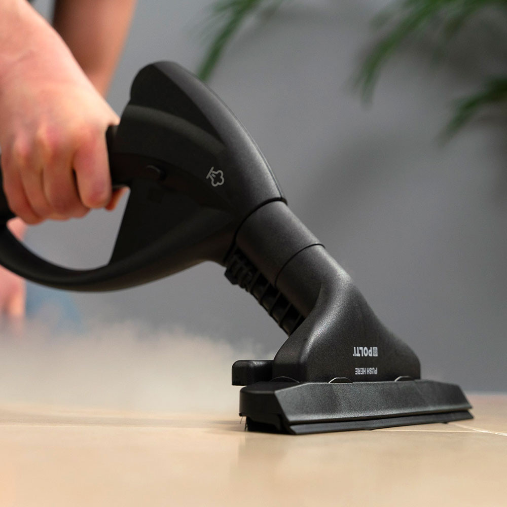Poti Vaporetto MV 20.20 ile ayar düğmesi kullanılarak hem buhar akışını hem de işlem yapılacak yüzey tipine göre emiş gücünü optimize etmek mümkündür.