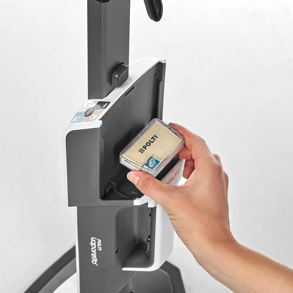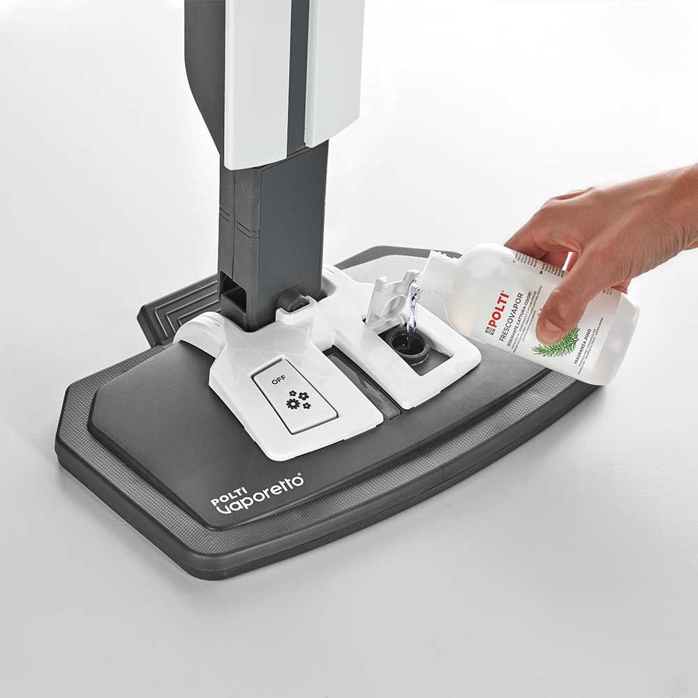 Polti Vaporetto Style, kullanım sırasında kötü kokuları yakalayan ve çevreye hoş bir koku yayan koku giderici Polti Frescovapor’a özel bir hazne ile donatılmıştır.